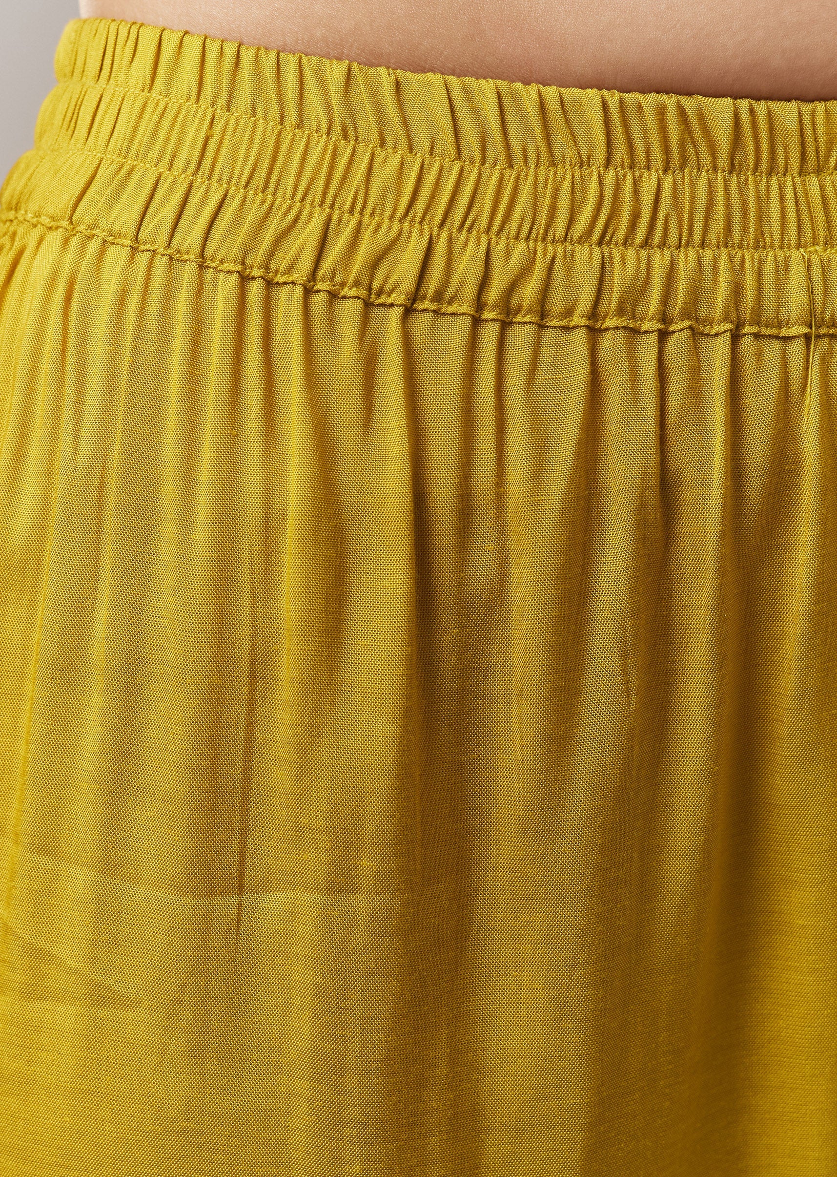 Bright and festive, this yellow anarkali suit is crafted in soft crepe fabric for a lightweight and elegant feel. Designed in an a line silhouette, the kurta features chevron prints... More Product Details