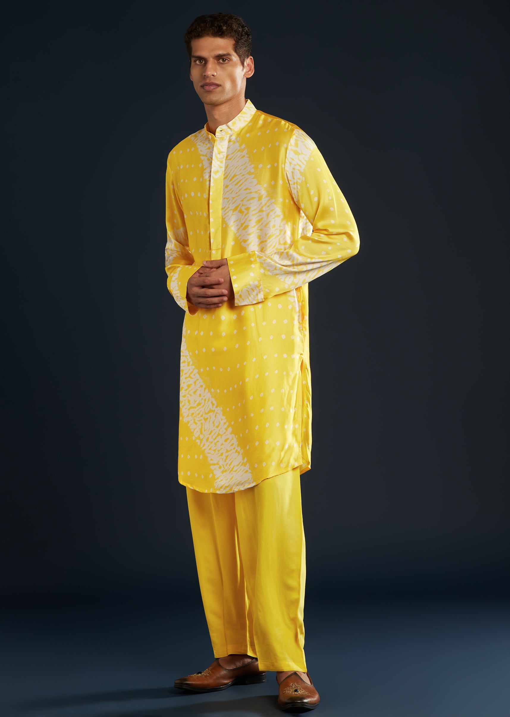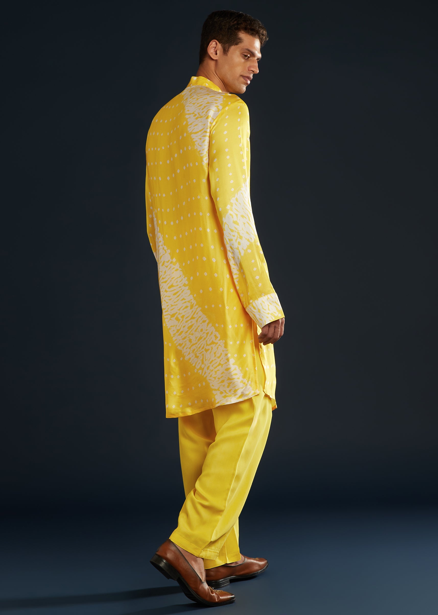 Radiating festive charm, this yellow Bandhani and Shibori print kurta set captures the essence of traditional artistry with a modern touch. The vibrant hues and fluid patterns create a lively... More Product Details