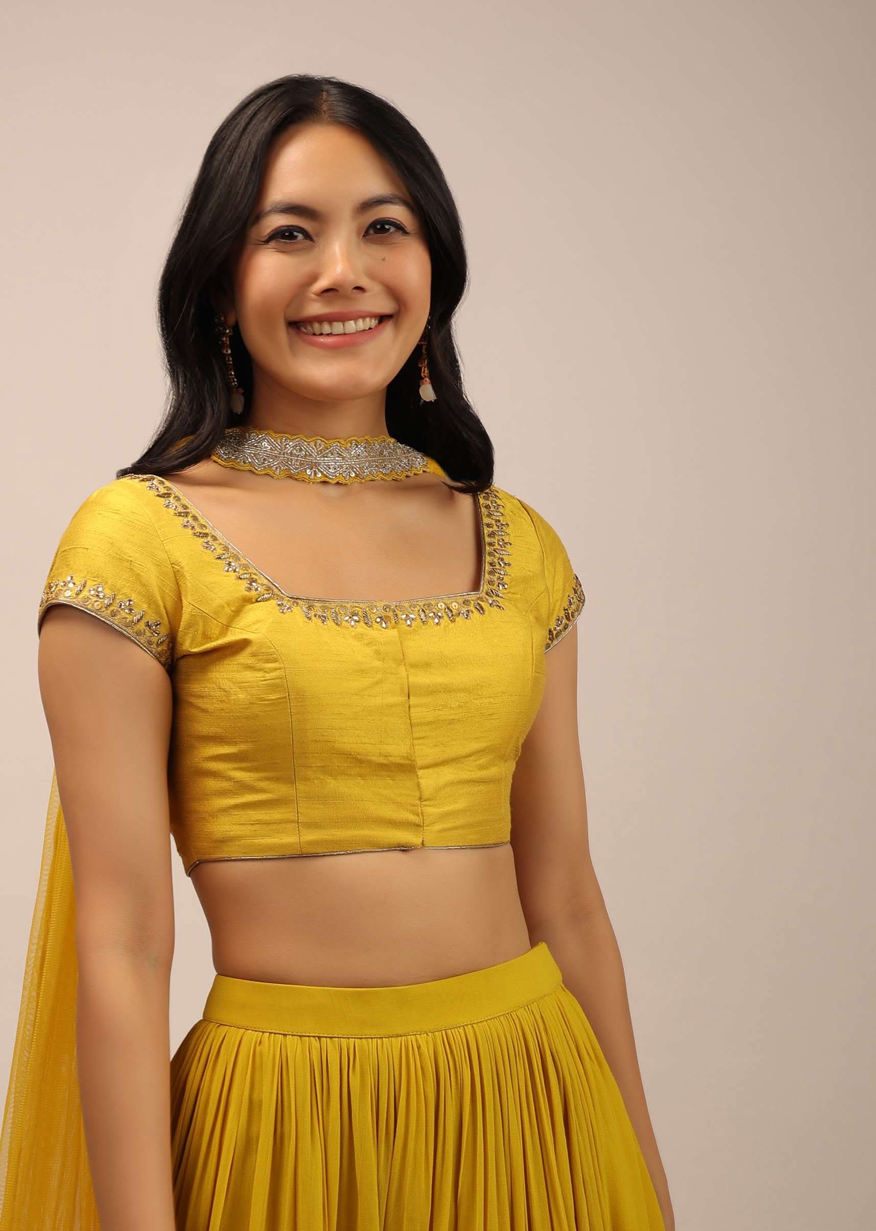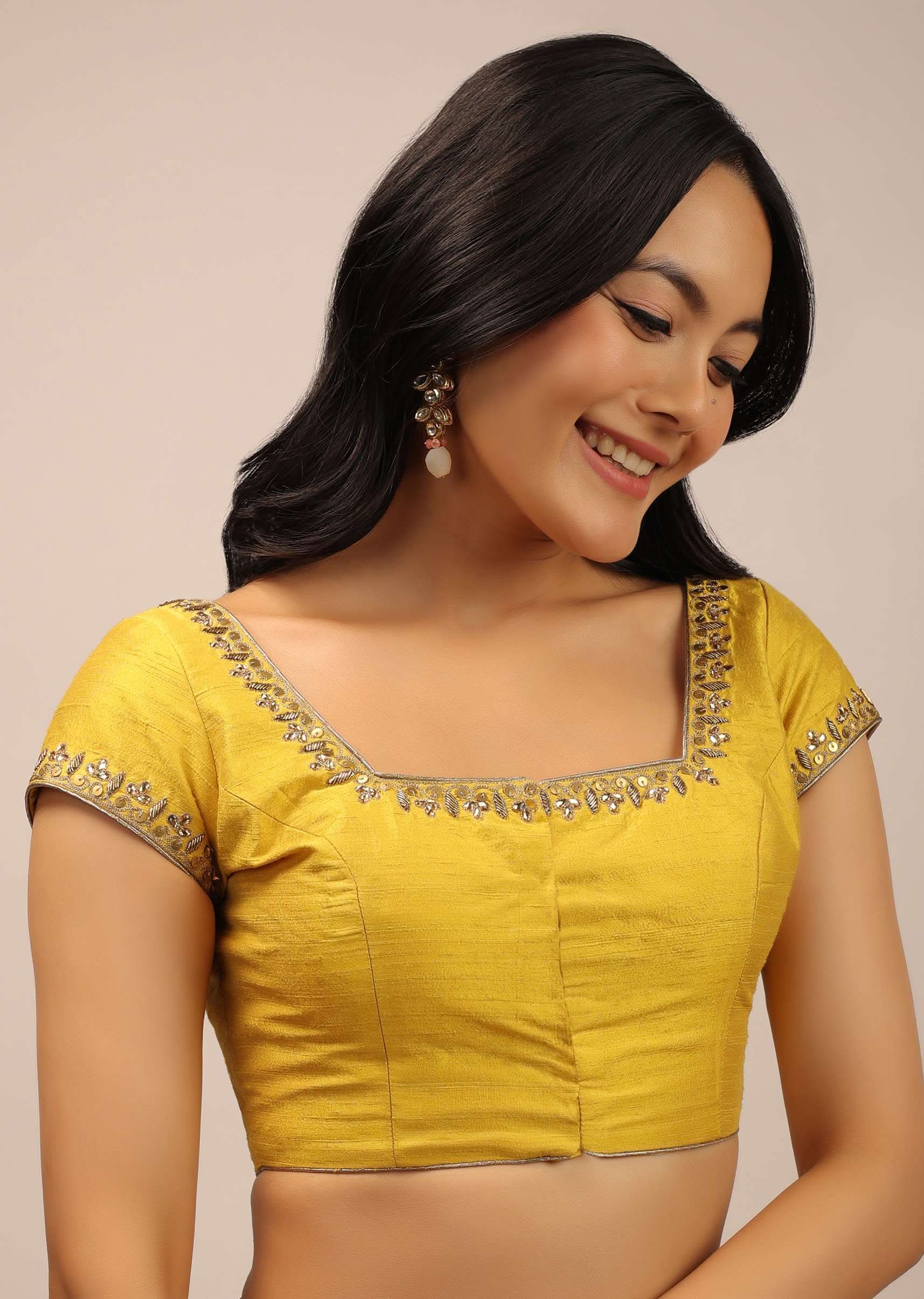 Yellow Blouse With Sequins, Stone And zardosi Work On The Neckline