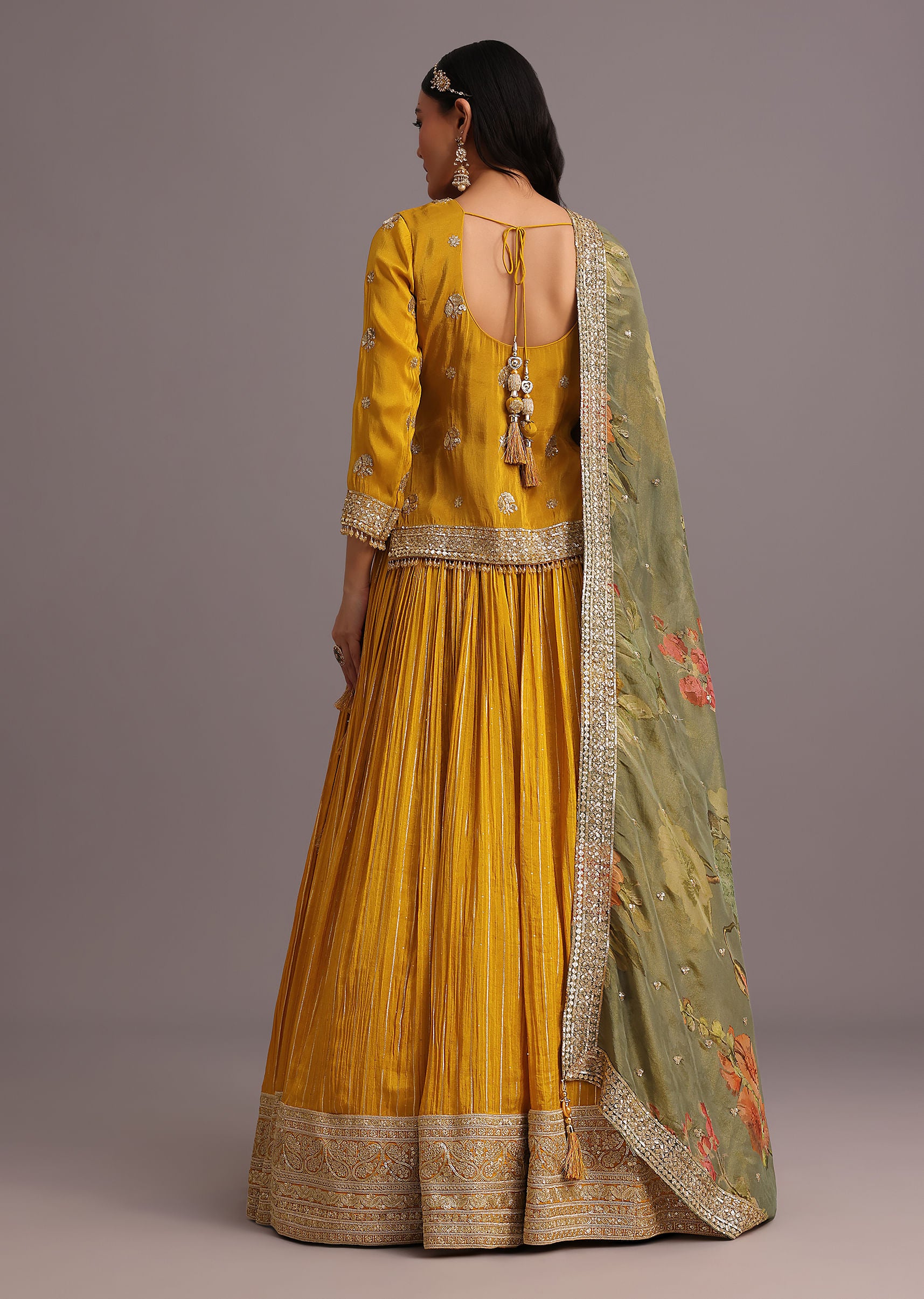 - Imagine a vibrant yellow lehenga set adorned with intricate cutdana and sequin work.