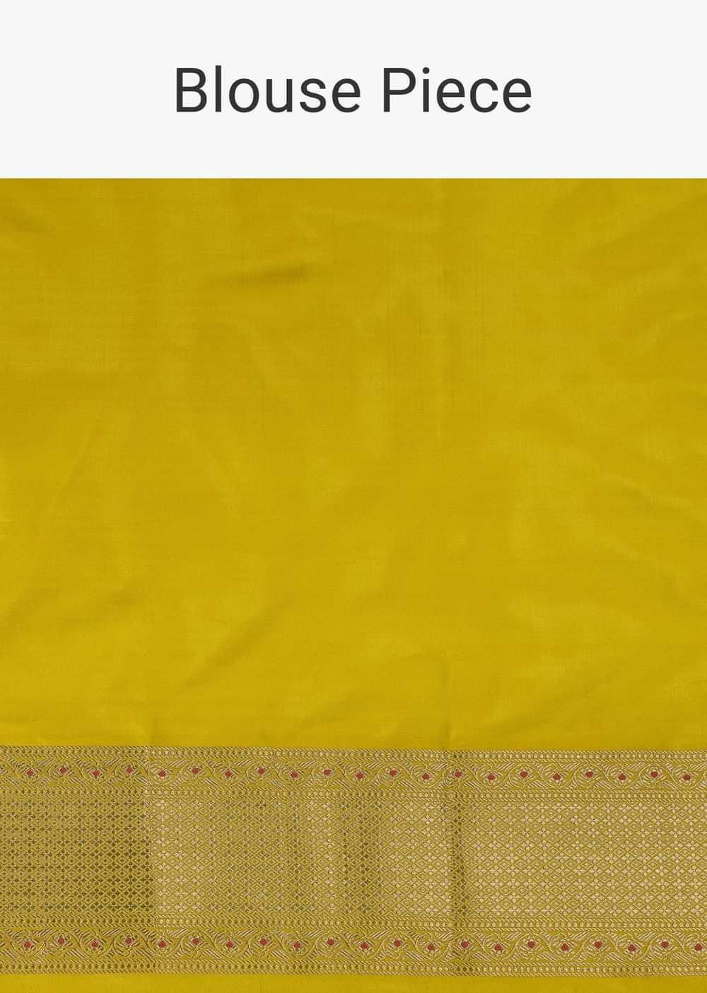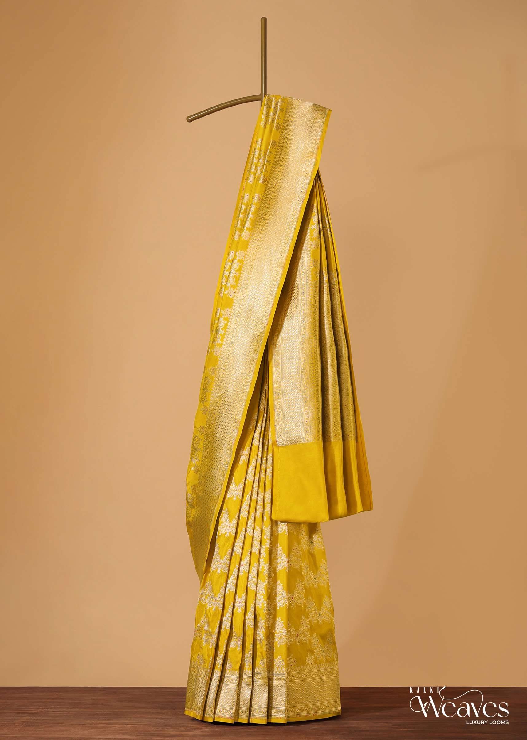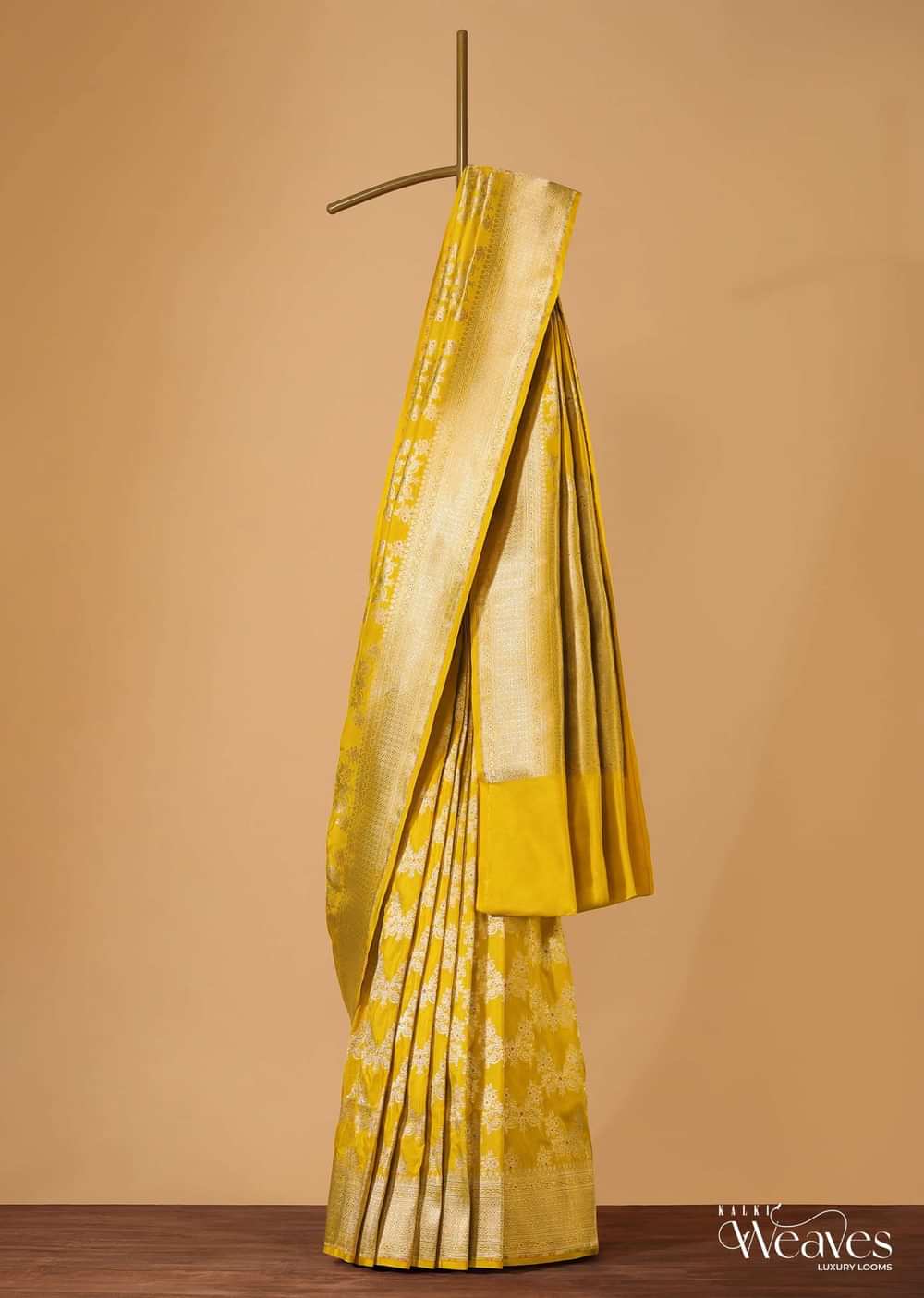 Yellow Handloom Banarasi Saree In Uppada Silk With Meenakari Weave And Unstitched Blouse