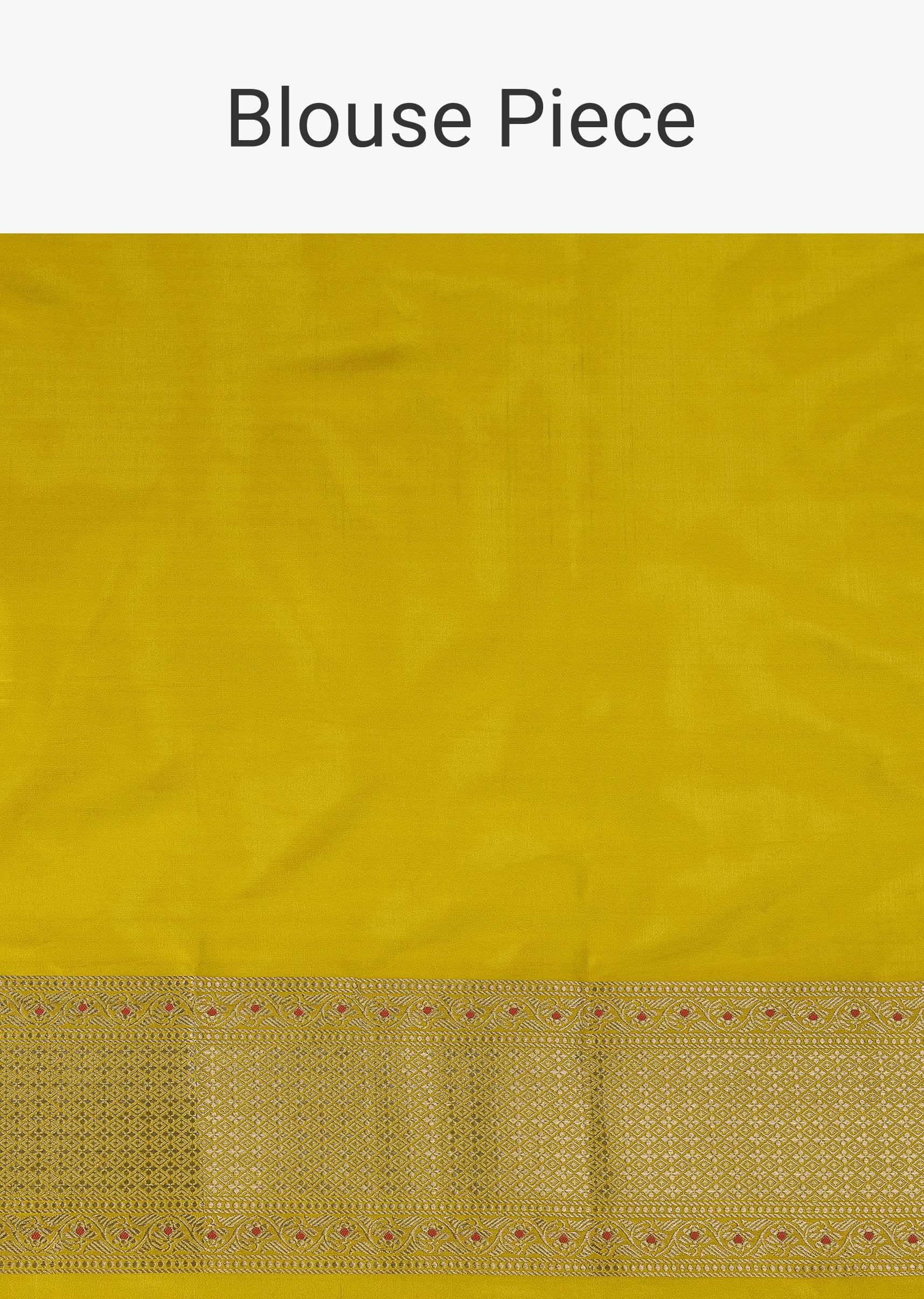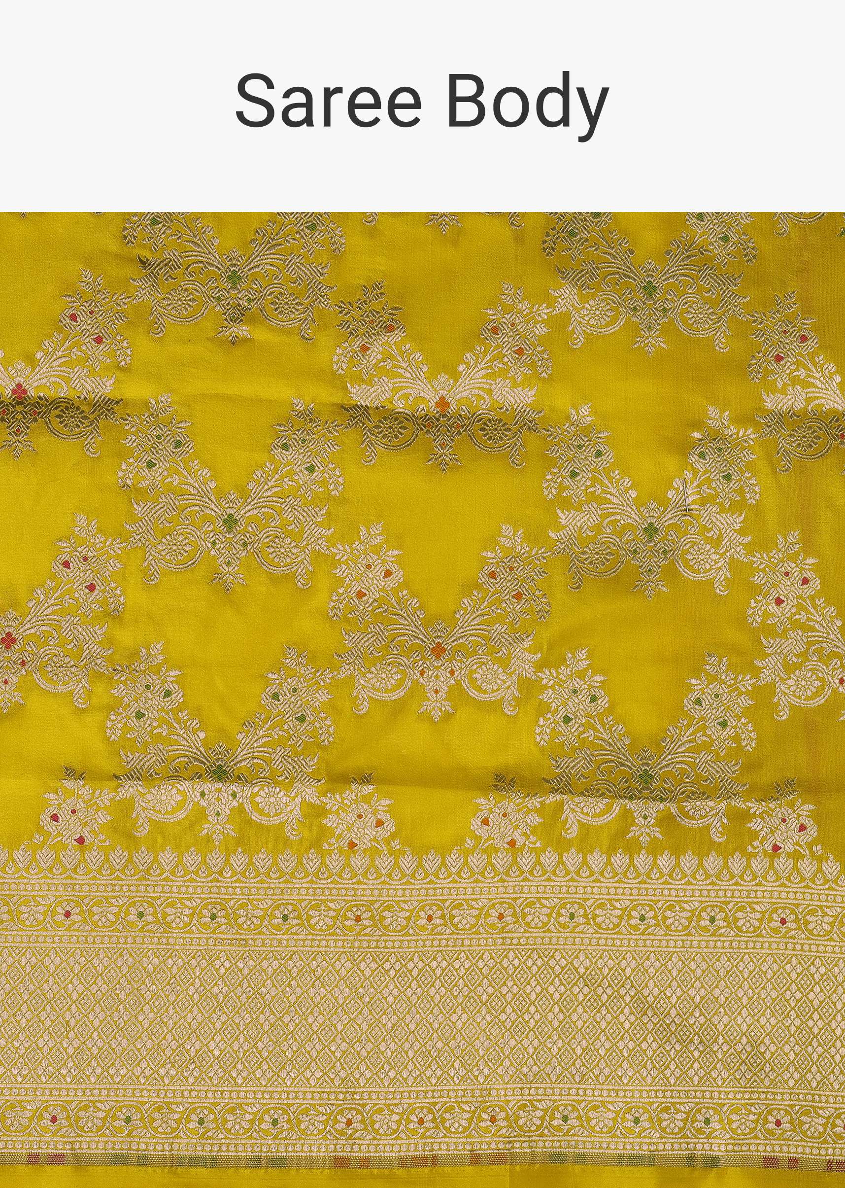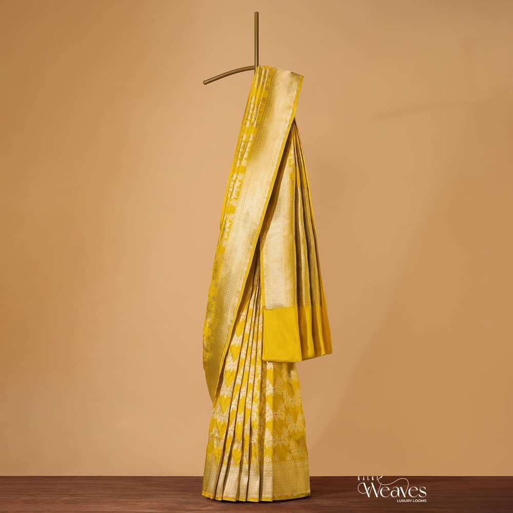 Yellow Handloom Banarasi Saree In Uppada Silk With Meenakari Weave And Unstitched Blouse