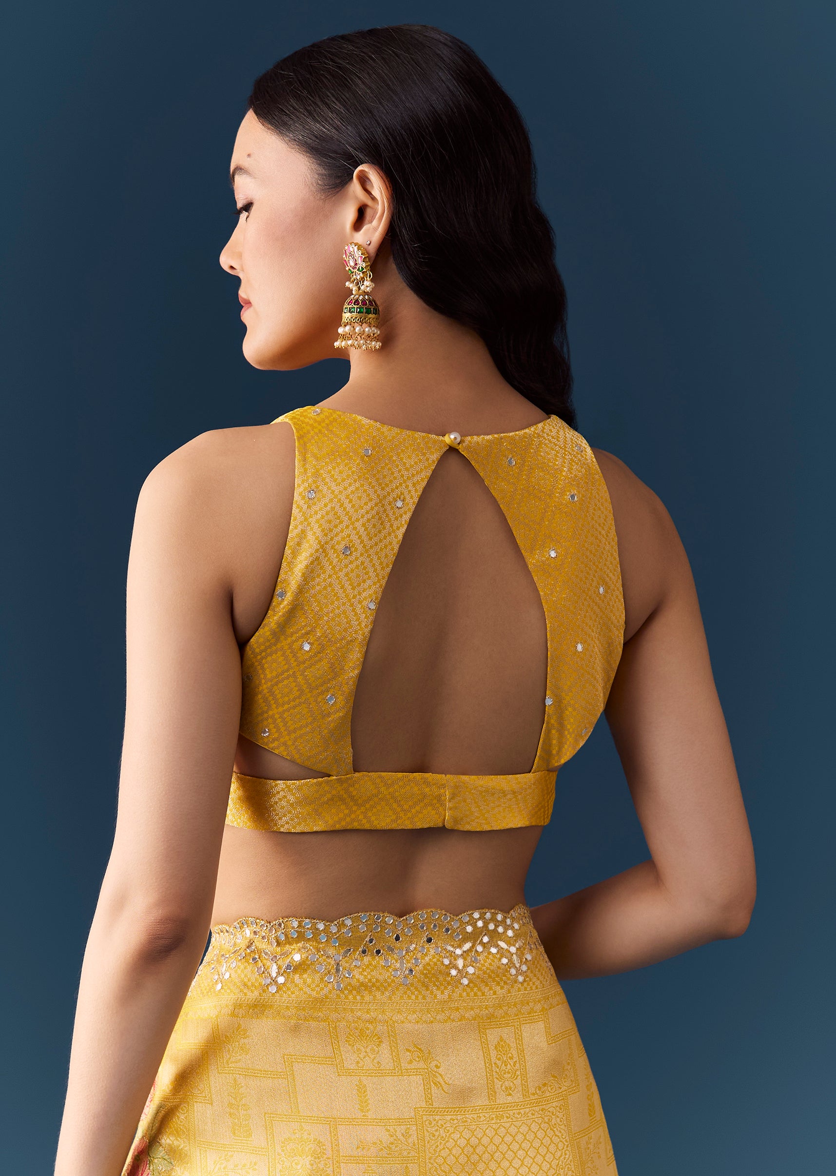 Yellow Jacquard Silk Woven Saree with Unstitched Blouse