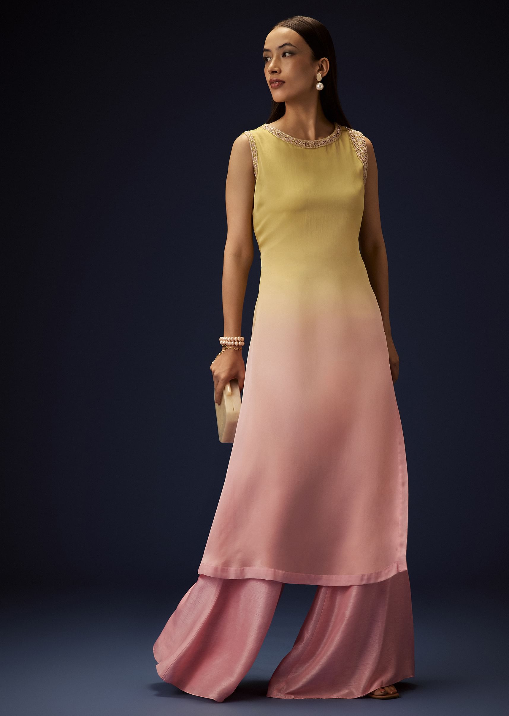 Yellow Ombre A Line Kurta With Bell Bottom Pants