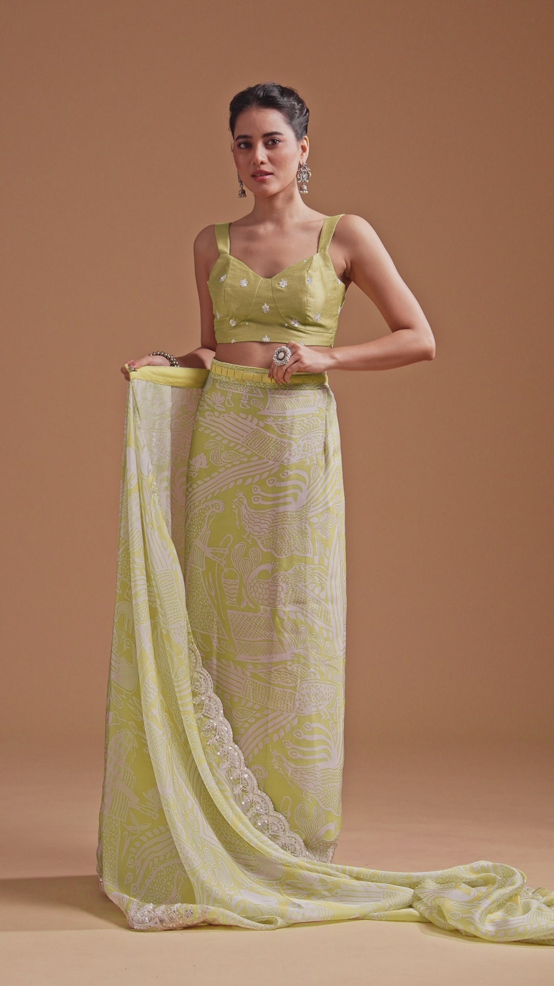 Lend an alluring charm by donning this printed saree at the next festive get-together. Fabricated using high-quality satin fabric, it is adorned with captivating motifs. Accentuated with shimmery sequins and thread embroidery on a yellow base, this saree comes paired with an unstitched blouse piece. Awarded as the Most Trusted Brand, we're delivering styles you love, just as promised.