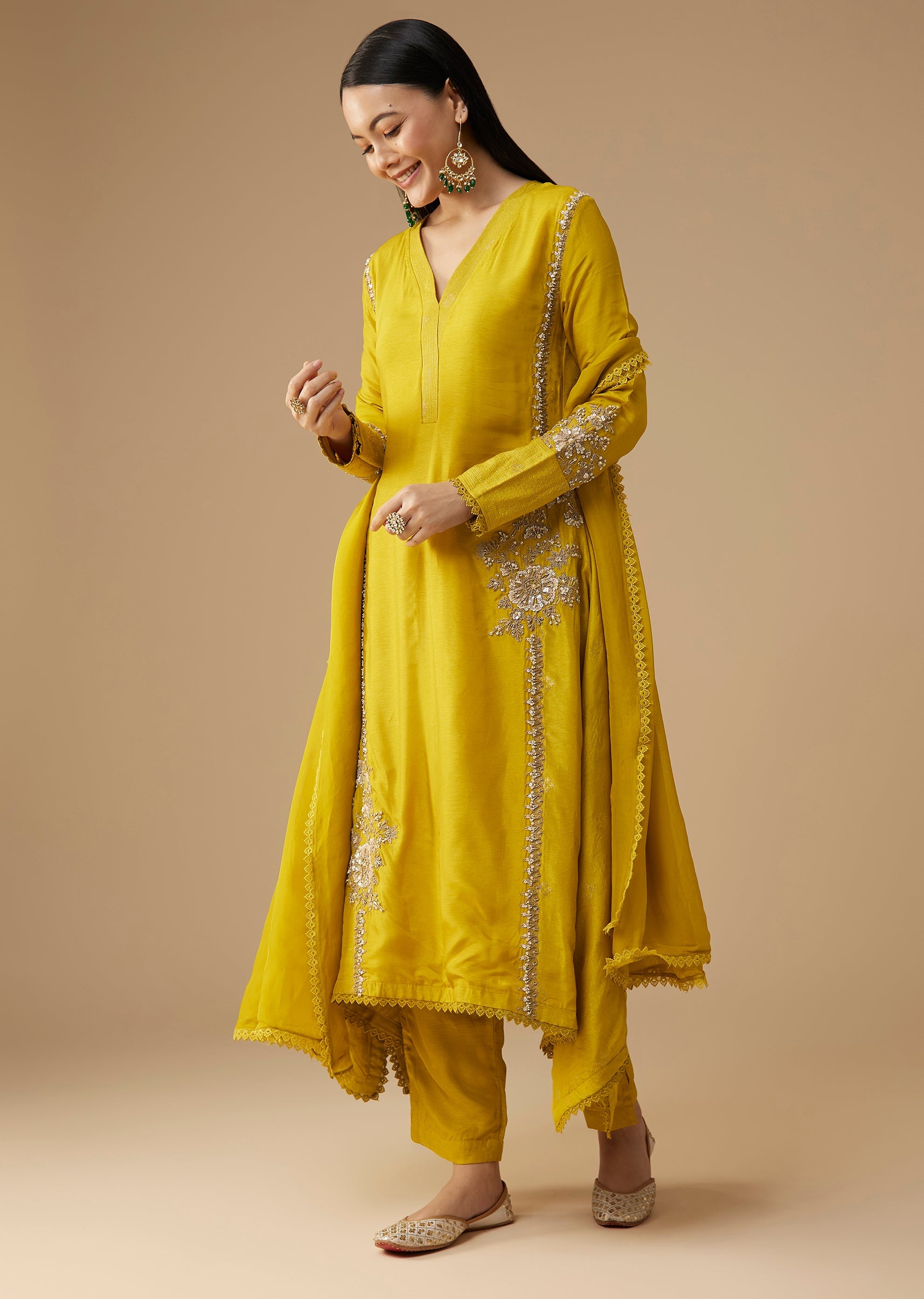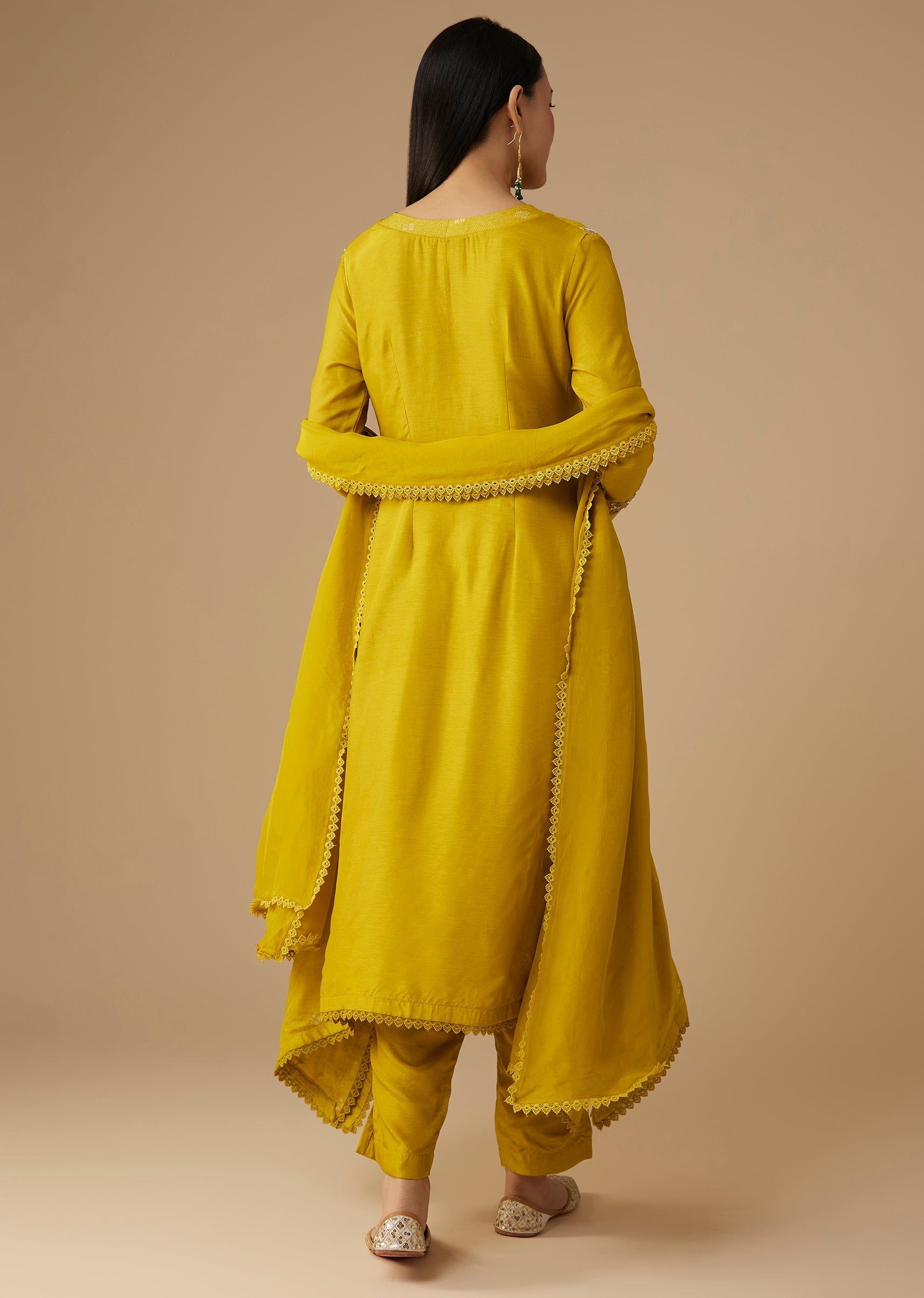 Yellow Sequin Embellished A-Line Anarkali Set