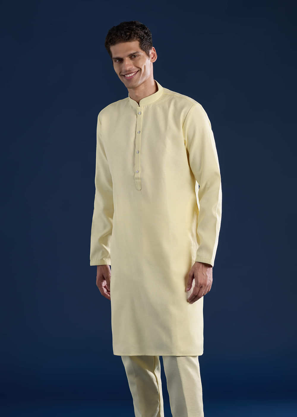 Radiating warmth and festive vibrance, this yellow silk jacket and kurta set with matching pants captures the essence of traditional elegance. The rich silk fabric enhances the brilliance of the... More Product Details