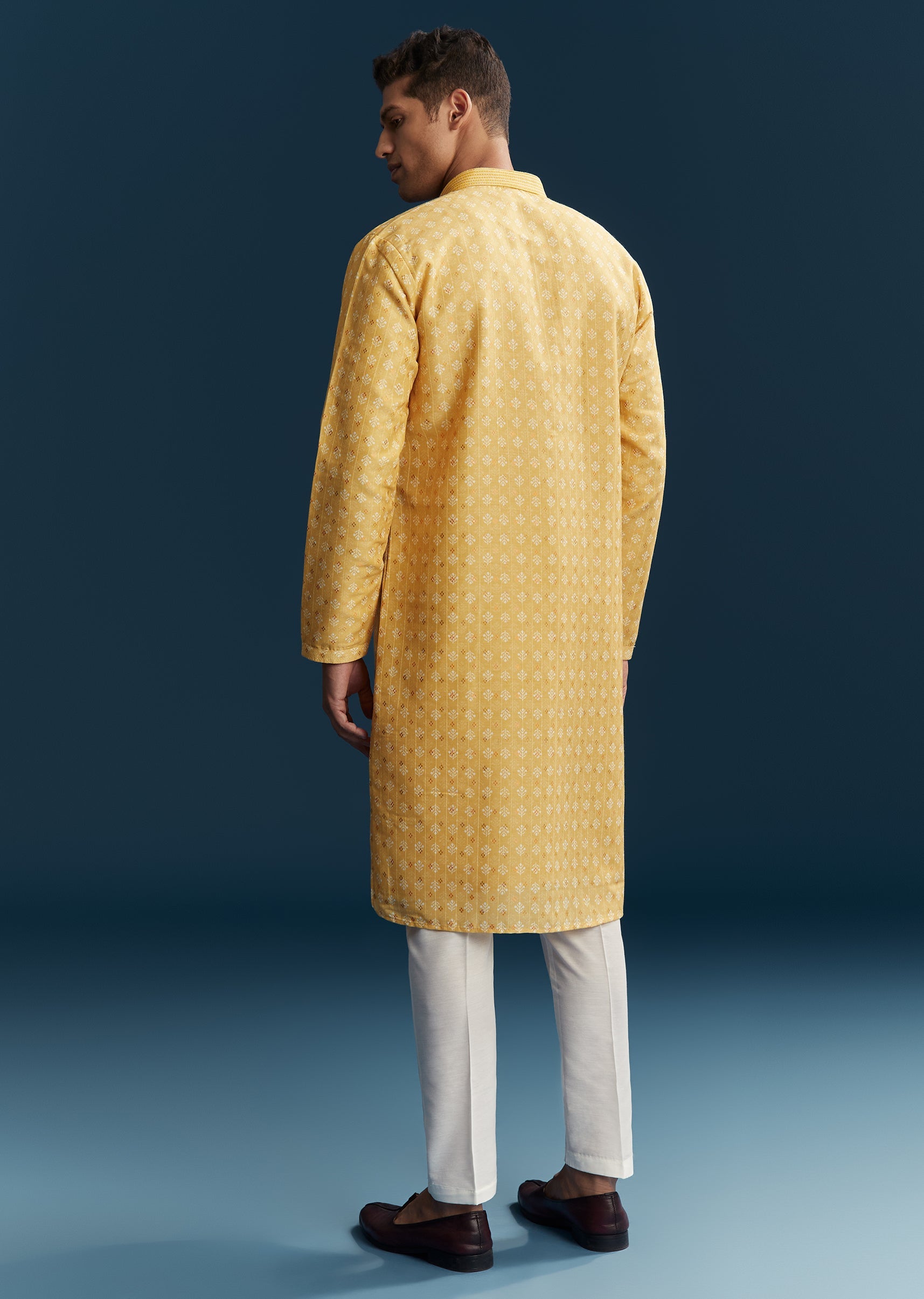 Yellow Silk Kurta Set With Minimal Thread Detail