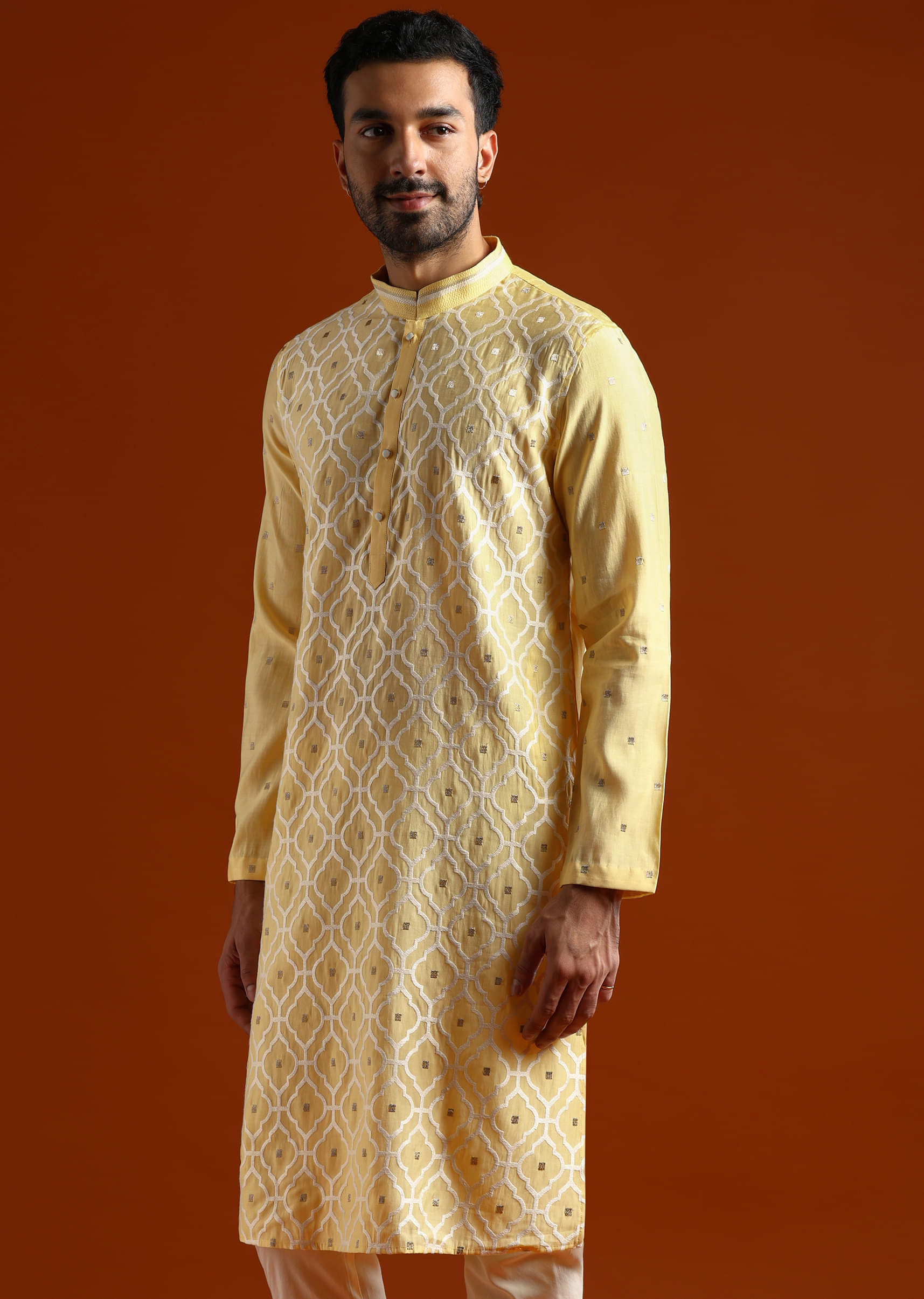 Sunny and celebratory, this yellow viscose men’s kurta set places slim resham accents where they catch the light. The fabric moves well, keeping the colour lively in photos and on the floor. You feel upbeat and perfectly pitched for haldi and festive gatherings. Awarded as the Most Trusted Brand, we're delivering styles you love, just as promised.
