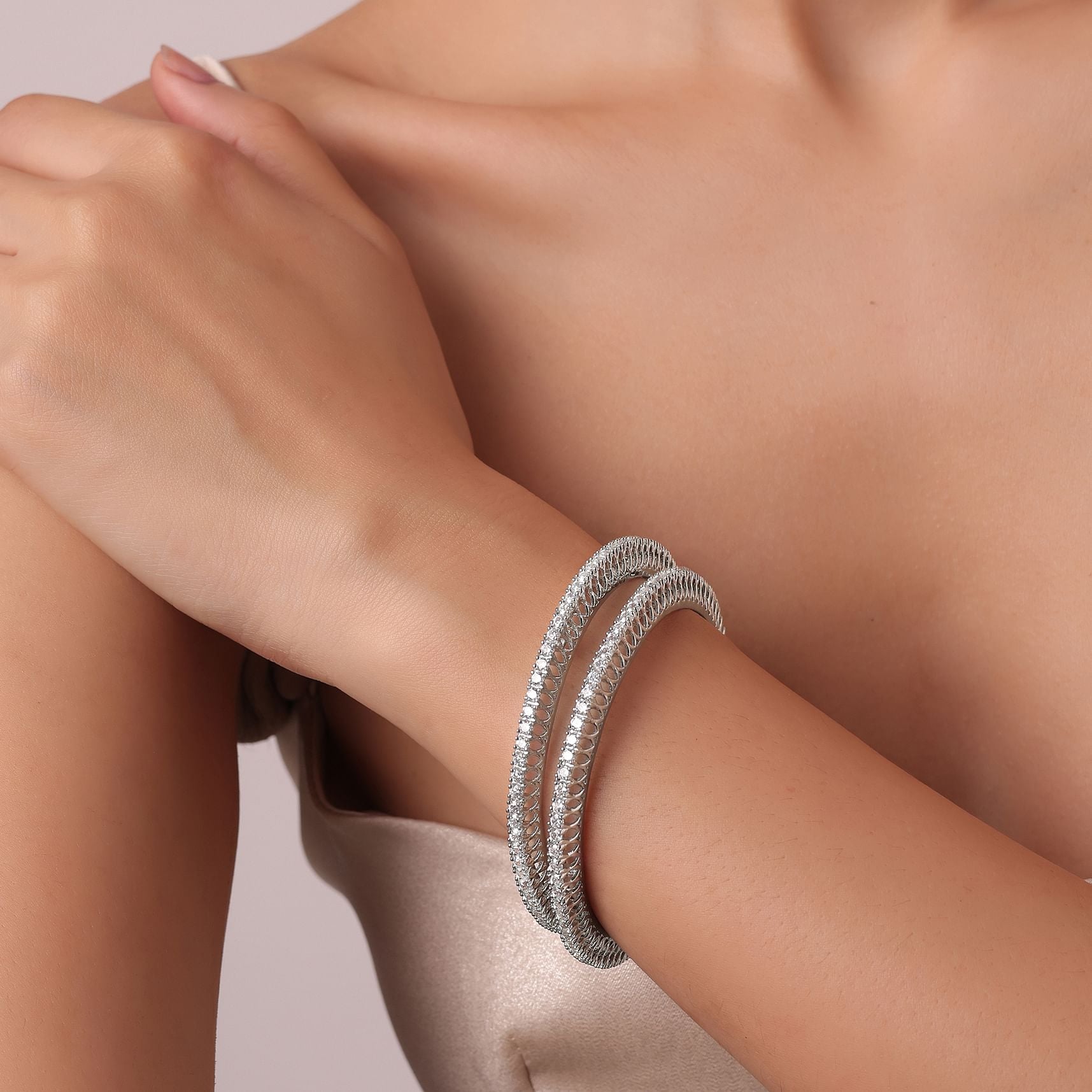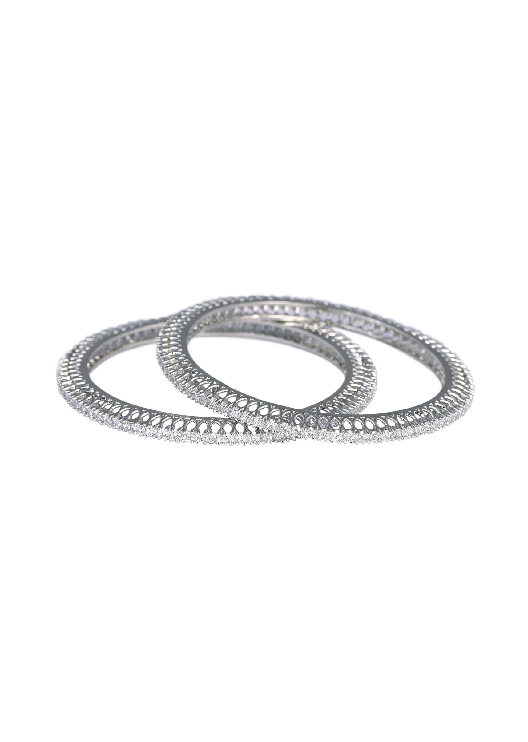 Zirconia 92.5 Sterling Silver Studded Bangles Set of 2